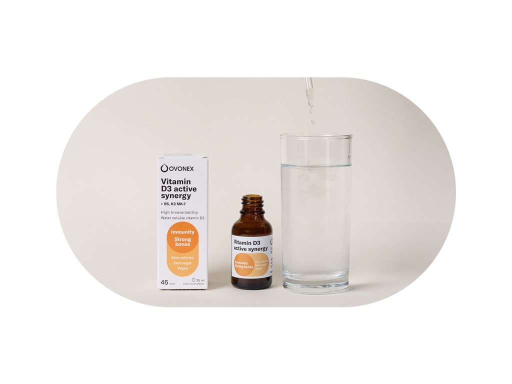 Každá dávka OVONEX Vitamín D3 Active Synergy obsahuje navyše vhodne zvolené živiny so synergickým efektom: